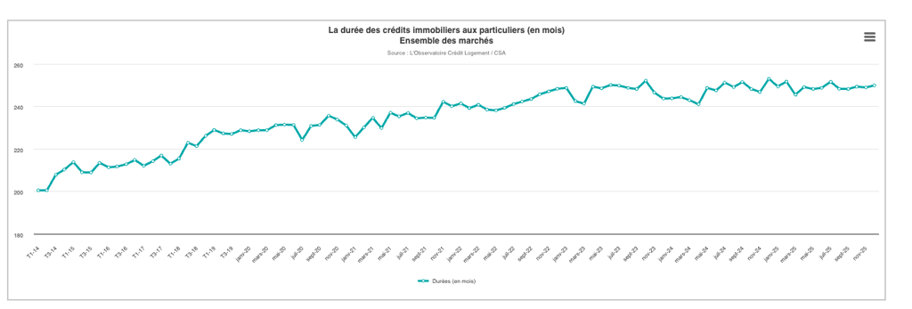 La durée moyenne des prêts atteint 250 mois (20 ans et 10 mois) – un record qui augmente le coût total du crédit