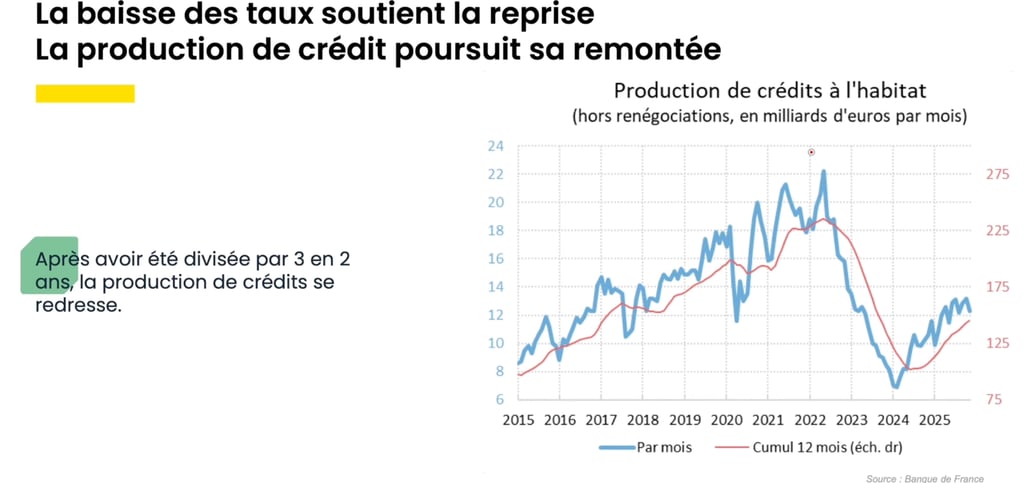 Cette décrue a été le moteur d'une reprise spectaculaire du marché. Sur l'ensemble de 2025, la production de crédits a progressé de 31,1% et le nombre de prêts accordés a bondi de 38%. Des chiffres qui témoignent du retour de la confiance des acheteurs après la crise de 2022-2023.